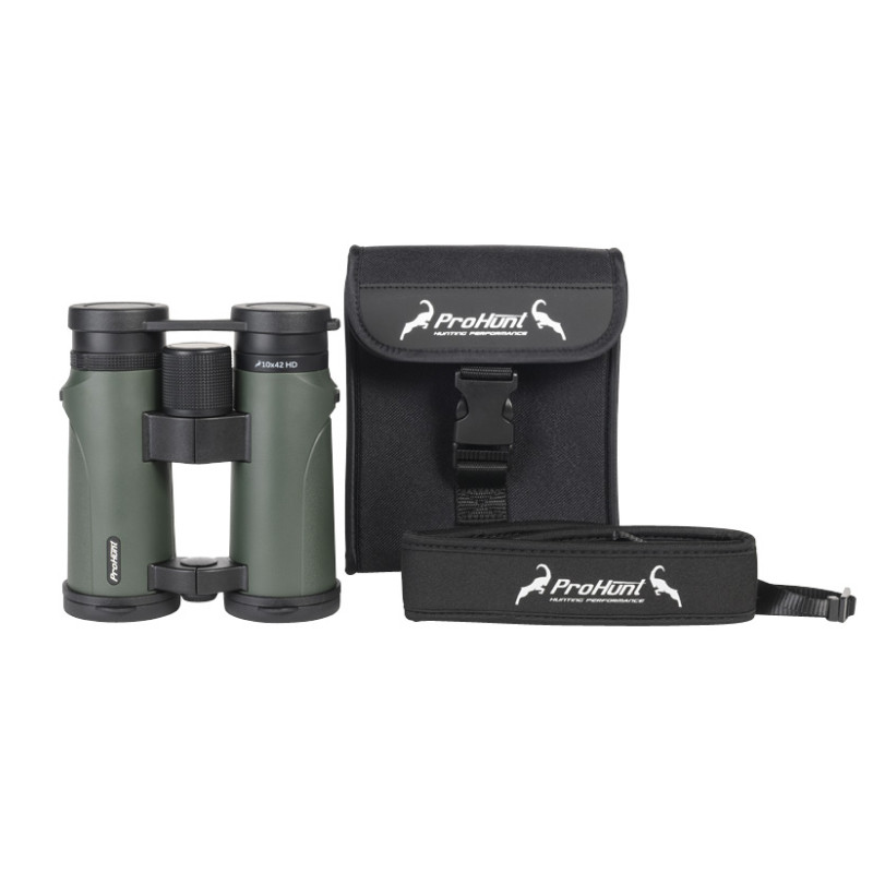 ProHunt 10x42 HD binoklis ir daudzpusīgs binoklis ar izcilu optisko veiktspēju. Izturīgs un viegli lietojams, šis binoklis piedāvā izcilas kvalitātes kontrastu, patiesu krāsu atveidi un optimālu gaismas jaudu, vienlaikus saglabājot kompaktumu un vieglumu. Pat lietū to izturīgais gumijas pārklājums nodrošina aizsardzību un perfektu saķeri. Tiem ir regulējams aizsargs pārnēsāšanas futrālis.