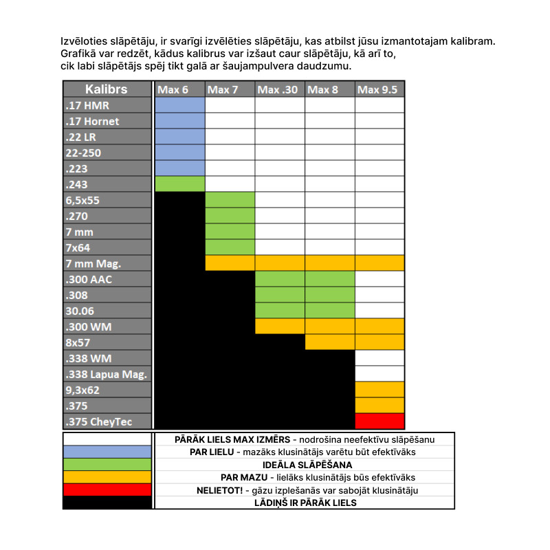 Paredzēts vidējiem kalibriem Šis slāpētājs ir vislabāk piemērots tādiem kalibriem kā :